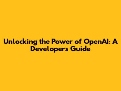 Unlocking The Power Of OpenAI: A Developer's Guide