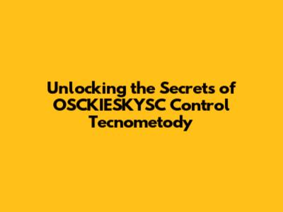 Unlocking The Secrets Of OSCKIESKYSC Control Tecnometody