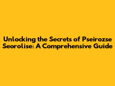 Unlocking The Secrets Of Pseirozse Seorolise: A Comprehensive Guide