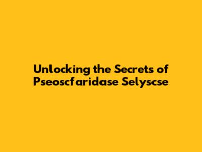 Unlocking The Secrets Of Pseoscfaridase Selyscse