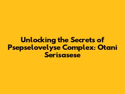 Unlocking The Secrets Of Psepselovelyse Complex: Otani Serisasese