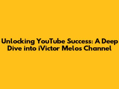 Unlocking YouTube Success: A Deep Dive Into IVictor Melo's Channel