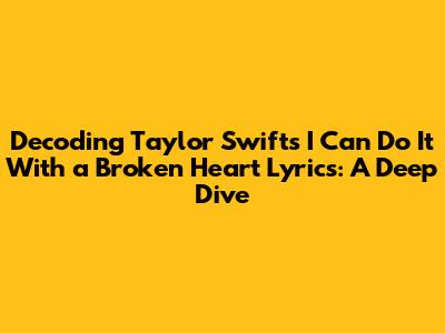 Unpacking 'I Can Do It With A Broken Heart': Taylor Swift's Lyrics