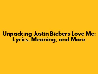 Unpacking Justin Bieber's 'Love Me': Lyrics, Meaning, And More