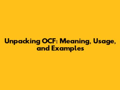 Unpacking OCF: Meaning, Usage, And Examples