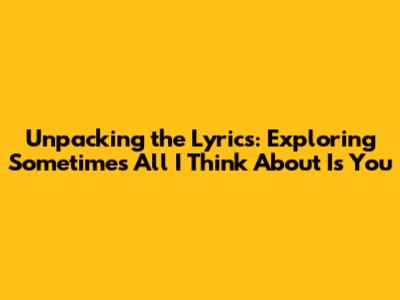 Unpacking The Lyrics: Exploring 'Sometimes All I Think About Is You'