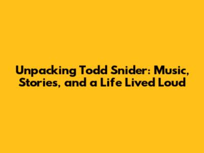 Todd Snider's Legacy and Continued Impact