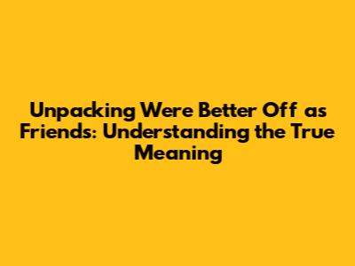 Unpacking 'We're Better Off As Friends': Understanding The True Meaning