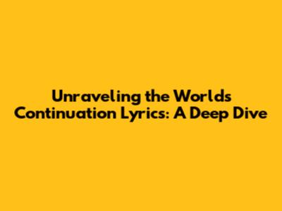 Unraveling The 'World's Continuation' Lyrics: A Deep Dive