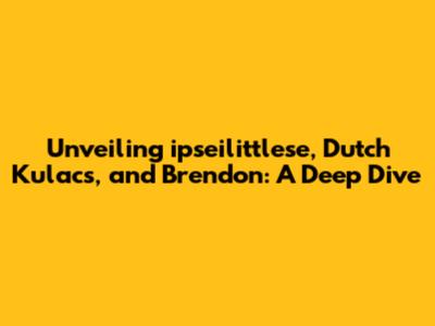 Unveiling Ipseilittlese, Dutch Kulacs, And Brendon: A Deep Dive