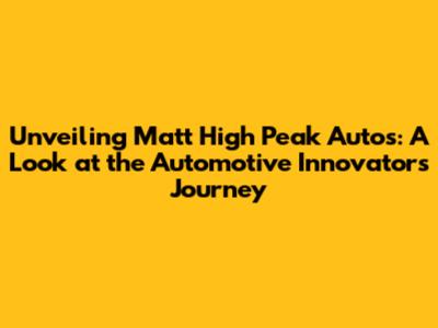 Unveiling Matt High Peak Autos: A Look At The Automotive Innovator's Journey