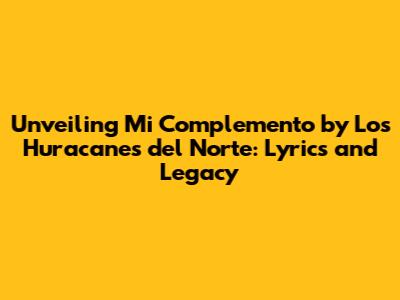 Hey everyone! Ever found yourself humming a tune and wondering, "What's the story behind this song?" Well, today, we're diving deep into the world of 'Mi Complemento' by Los Huracanes del Norte. This iconic song isn't just a collection of words and music; it's a window into the heart and soul of Norteño music, a genre that resonates with so many. We're going to unpack the lyrics, understand the cultural impact, and explore why this particular track has become a timeless classic. So, grab your virtual seat, get ready to sing along, and let's get started!