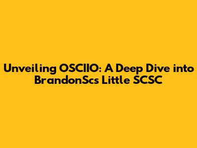Unveiling OSCIIO: A Deep Dive Into BrandonSc's Little SCSC