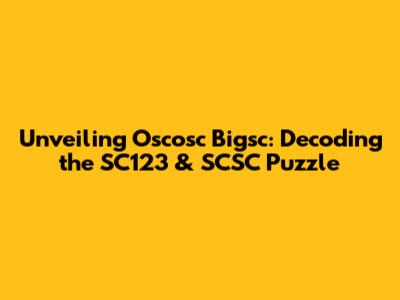 Unveiling Oscosc Bigsc: Decoding The SC123 & SCSC Puzzle