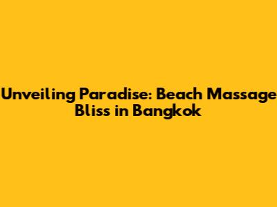 Unveiling Paradise: Beach Massage Bliss In Bangkok