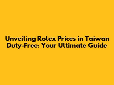 Unveiling Rolex Prices In Taiwan Duty-Free: Your Ultimate Guide