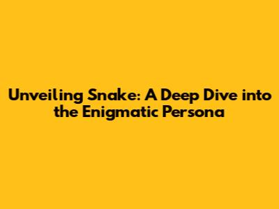 Unveiling Snake: A Deep Dive Into The Enigmatic Persona