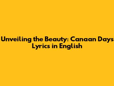 Unveiling The Beauty: Canaan Days Lyrics In English
