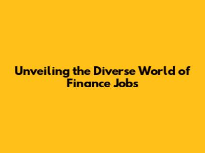 Unveiling The Diverse World Of Finance Jobs