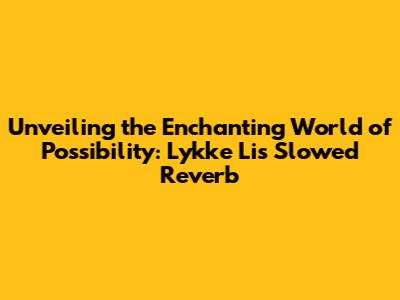 Unveiling The Enchanting World Of Possibility: Lykke Li's Slowed Reverb