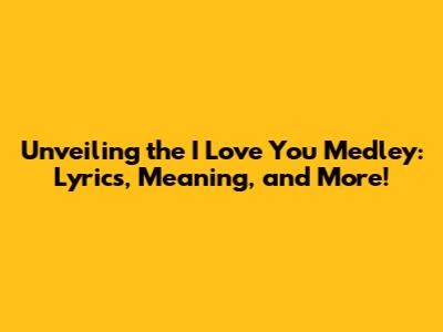 Unveiling The 'I Love You Medley': Lyrics, Meaning, And More!