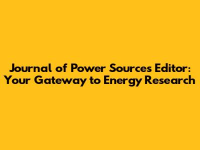 Unveiling The Journal Of Power Sources Editor: A Deep Dive