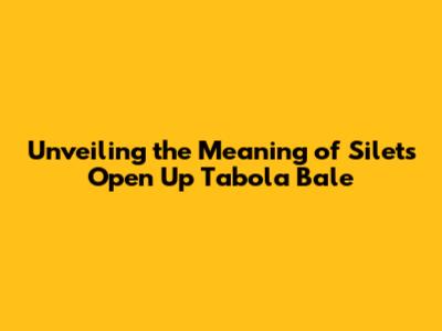 Unveiling The Meaning Of Silet's 'Open Up Tabola Bale'