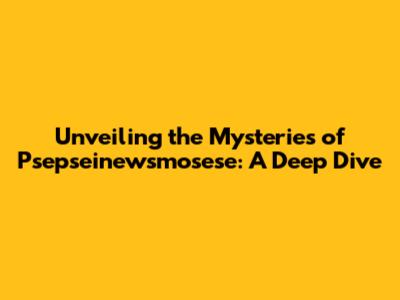 Unveiling The Mysteries Of Psepseinewsmosese: A Deep Dive
