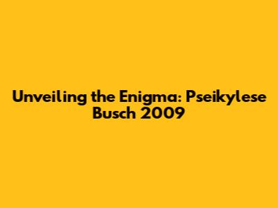 Unveiling The Mystery: Pseikylese Busch 2009