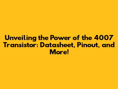 The 4007 Datasheet: Your Treasure Map to Transistor Understanding