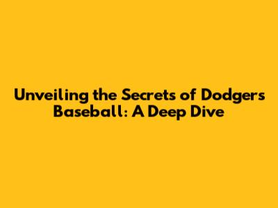 Unveiling The Secrets Of Dodgers Baseball: A Deep Dive
