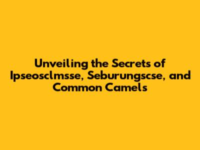 Unveiling The Secrets Of Ipseosclmsse, Seburungscse, And Common Camels