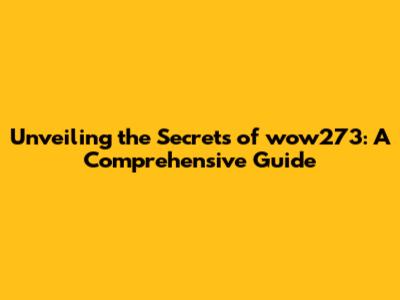 Unveiling The Secrets Of Wow273: A Comprehensive Guide