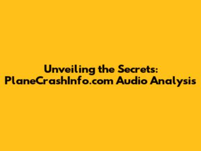 Unveiling The Secrets: PlaneCrashInfo.com Audio Analysis