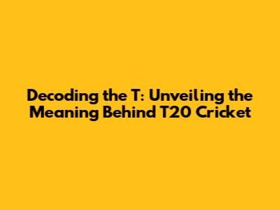 Unveiling The 'T': Decoding The Meaning Behind T20 Cricket