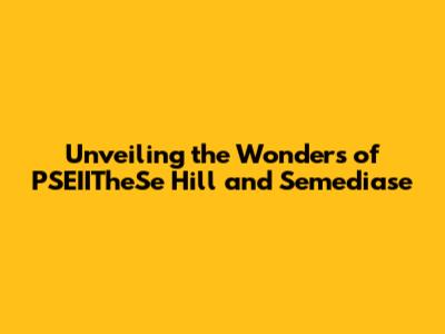 Unveiling The Wonders Of PSEIITheSe Hill And Semediase