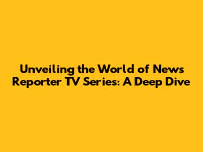 Unveiling The World Of News Reporter TV Series: A Deep Dive
