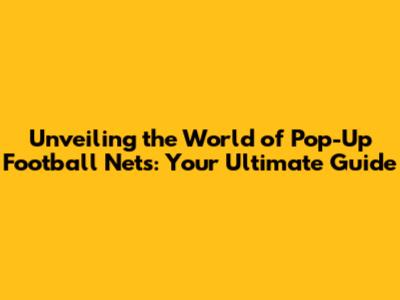 Unveiling The World Of Pop-Up Football Nets: Your Ultimate Guide