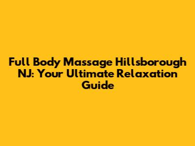 Alright, let's get down to the good stuff! Where can you find a great full body massage in Hillsborough, NJ? Here are some options to consider: