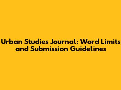Urban Studies Journal: Word Limits And Submission Guidelines