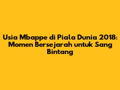 Kylian Mbappe, nama yang kini menggema di seluruh penjuru dunia sepak bola. Namun, mari kita kembali ke tahun 2018, saat namanya mulai meroket di panggung Piala Dunia. Pertanyaan yang sering muncul adalah, berapa usia Mbappe saat itu? Jawabannya adalah, Mbappe masih sangat muda, baru berusia 19 tahun ketika ia turut serta dalam Piala Dunia 2018 yang digelar di Rusia. Usia yang sangat belia untuk ukuran pemain yang mampu tampil memukau di panggung sekelas Piala Dunia. Penampilannya saat itu tidak hanya mengejutkan, tetapi juga memberikan harapan besar bagi masa depan sepak bola Prancis dan dunia.