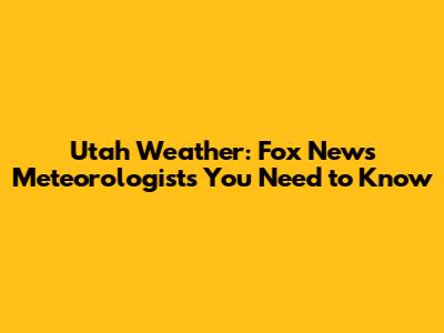 Utah Weather: Fox News Meteorologists You Need To Know