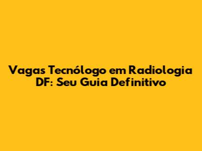 Vagas Tecnólogo em Radiologia DF - Se você está em busca de uma carreira promissora e bem remunerada na área da saúde, as vagas para tecnólogo em radiologia no Distrito Federal podem ser a chave para o seu sucesso. O DF, com sua crescente demanda por serviços de saúde e tecnologia de ponta, oferece um cenário fértil para profissionais qualificados. Mas como encontrar essas oportunidades? Quais são os requisitos e as melhores dicas para se destacar no mercado? Neste guia completo, vamos explorar tudo o que você precisa saber sobre as vagas de tecnólogo em radiologia no DF, desde os processos seletivos até as perspectivas de carreira.