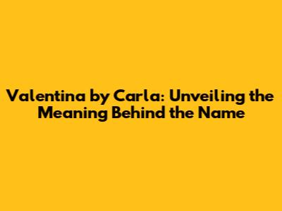 Valentina By Carla: Unveiling The Meaning Behind The Name