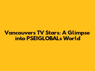 Vancouver's TV Stars: A Glimpse Into PSEIGLOBAL's World