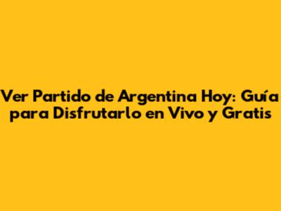 Ver Partido De Argentina Hoy: Guía Para Disfrutarlo En Vivo Y Gratis