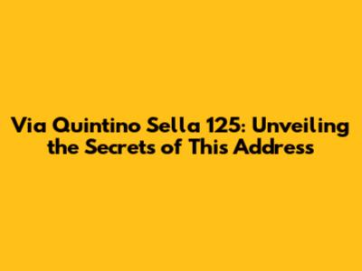 Via Quintino Sella 125: Unveiling The Secrets Of This Address