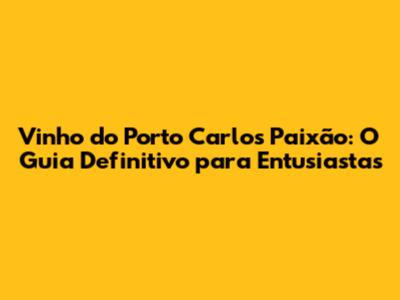 Vinho Do Porto Carlos Paixão: Guia Completo