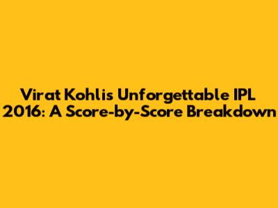 We will analyze each match, highlighting not only the scores but also the context of each innings. How did the pitch play? What was the opposition bowling attack like? Were there any clutch performances under pressure? We'll cover it all, giving you a complete picture of Kohli's impact on the 2016 IPL. This season was a turning point for Kohli, cementing his status as one of the best batsmen in the world. He showcased an extraordinary ability to score consistently and aggressively, becoming a nightmare for bowlers across the league. From the explosive powerplay to the calm chases, Kohli's performances were a masterclass in batting. So, grab your popcorn, or your cricket bat, and let's get started on this exciting trip down memory lane! It's going to be a blast, and trust me, by the end of this, you will have a newfound appreciation for the greatness that is Virat Kohli.