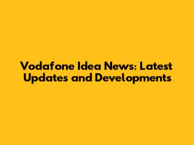 Vodafone Idea News: Latest Updates And Developments